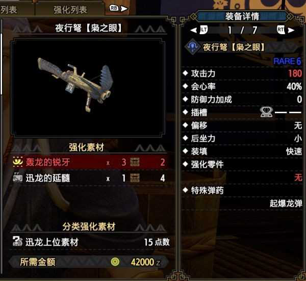 接着说下配装思路,武器自带40%会心率,配合弱点特效3,有效部位可达到90%,配合超会心3和速射强化3提升,伤害可以进一步提升,装填1就可以将贯穿弹2装填最快,另外回避距离提升2可以更好的走位调整,减轻后坐力2也足够了,另外我加了一点风耐,可以避免怪物小风压被困,剩余要提升的方向也较为明确,要么选择满会心,要么选择攻击。