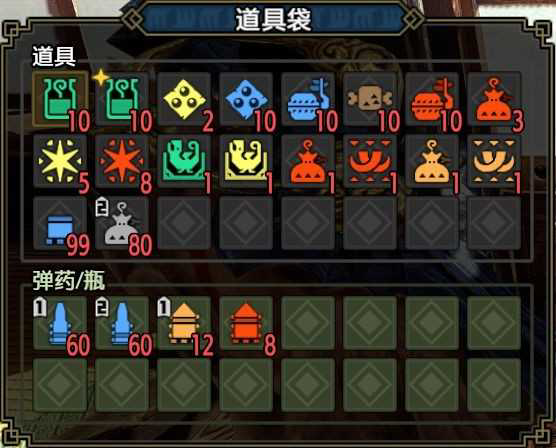 背包可以参考下我个人的这种,不必要的弹药可以不放,方便更便捷的选择子弹,另外本身贯通弹的数量足够了,如若打点不准的话,贯通2不够,贯通1也是够的,而且也支持速射。