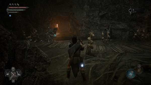 打死这几个弓箭手以后,上面岔路左边有个小锤哥,小锤哥旁边有一个可以进入阳间的东西,小锤哥这条路再往前一点是一个可以自己拉篝火的地点。