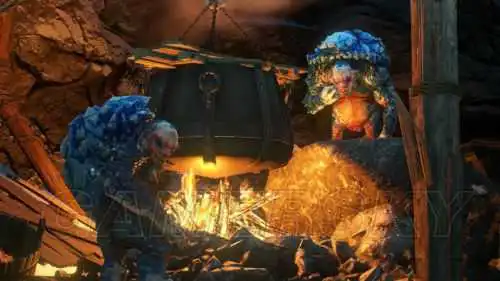 3、玩家在途中会与的废弃大船上的船员对话,对话完之后继续继续前进,利用猎人视觉可以追寻红色印记,之后找到洞口后,我们可以看到有两只巨魔。