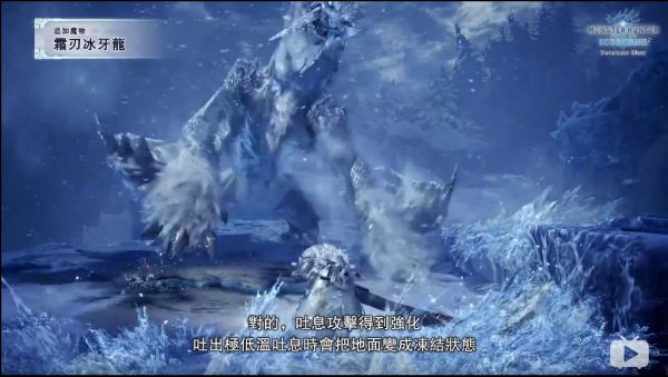 9.【霜刃冰牙龙】的吐息攻击,会在地面结冰,踩到的猎人会被冻住,行动困难,耐冰3跟强壁珠都无法防御,被冻住属于捕食攻击。