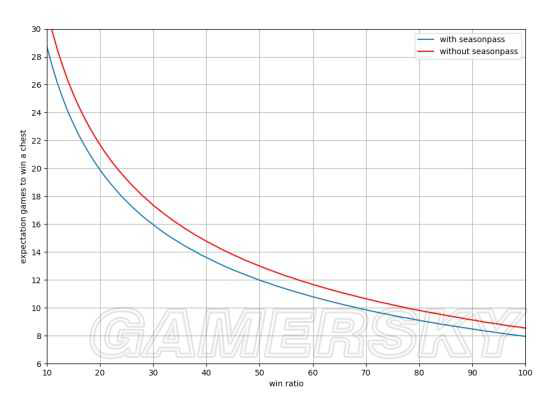 在其他条件不变,50%胜率下,如果有季票,你肝一包需要……大约11.4场(对比没有季票的12.2场)。