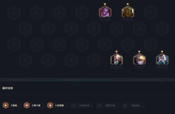 格斗发明家是前期非常强势的过渡体系,且2格斗还能增强坦度,2极客羁绊还能让一件散装变成成品,连胜非常容易。但过渡不是唯一,主要看对局啥强上啥就对了,甚至4学院前期稳血能力也很强,但连胜率不高。