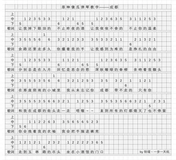 《原神》中相信参加了风花节的小伙伴们都已经兑换了风物之诗琴了,那么我们可否用这部琴演奏赵雷的成名曲成都呢?现在为大家带来“轩瑄丶一步一天坑”的《原神》成都演奏谱分享,希望对大家有所帮助。