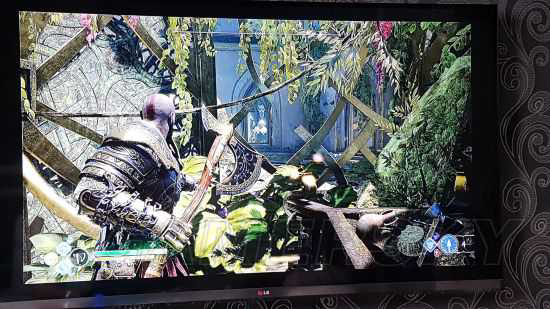 比如亚尔夫海姆里在离开光之湖之前最后一个三女神宝箱,我试了几次之后发现了一个超简单的打开方法,先来到图一(右侧的宝箱),把斧子抛到图二的位置附近,然后来到宝箱前把准星瞄准图三(左侧的宝箱)按R1的召回斧子,这时候因为角度问题,斧子返回时会刚好敲响右侧宝箱,再抛出斧子敲左侧宝箱,召回后就可以慢悠悠的瞄准图四的中间宝箱了,祝大家开箱愉快。