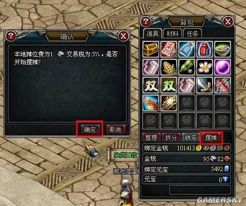 玩家可以在城中的摆摊区进行摆摊,打开背包,摆摊按钮。交付1银,就可以进行摆摊。