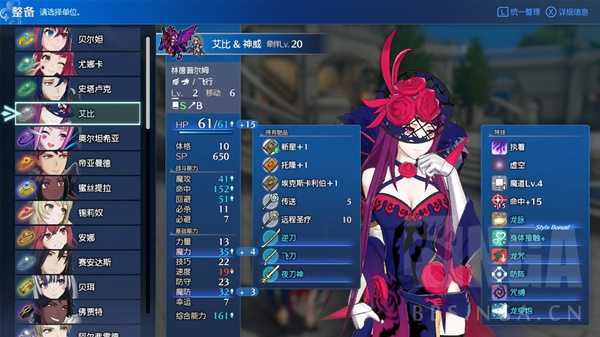 雪国版卡米拉大姐姐入队即有高属性可转职,专属职业魔力高机动性高耐久也不错,虽然可能成长低但是因为自身的高基础属性完全可以承担移动炮台的职责. 戒指方面我把最重要的神威戒指给了她,依靠她的高机动和3格射程雷魔法可以做到快速群控,虽然自身命中低下,但是禁足龙咒只需要发起攻击就能触发,神威被动身体接触和飞行系龙脉也能提供群奶,有好几章主线全靠她和舞男配合,拖住潮水般的增援为队友争取到了击杀boss的时间,是队伍里不可或缺的控制法师.