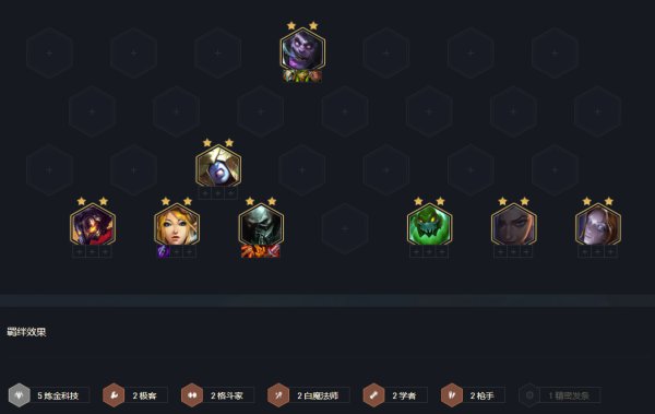 7发明的龙无比强势输出与坦度极高,如果有海克斯强化自我修复直接无敌,死了还能复生,如果没有发明家羁绊转职、心、魂基克5发明+4学者或5发明3白2发条,如果输出装备多也可考虑上烬当输出主C,强度依然爆炸。