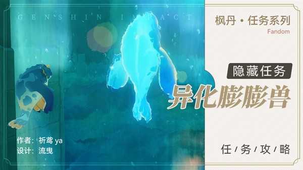 《原神》4.0中的异化膨膨兽是一项隐藏任务,需要玩家帮助被困在海底宫殿的异化膨膨兽,下面请看由“祈鸢ya”带来的《原神》4.0隐藏任务异化膨膨兽攻略,一起来看看吧。