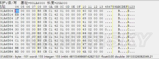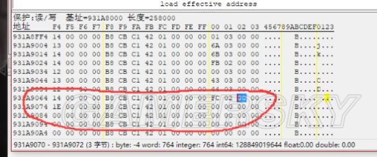 右键---浏览相关内存区域---找到最下方一行全是00000000的那些。