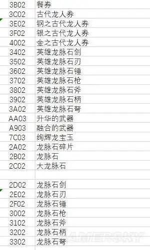 这里还是给大家说明清楚,下面这两张图分别代表的是道具的数量代码以及物品代码。
