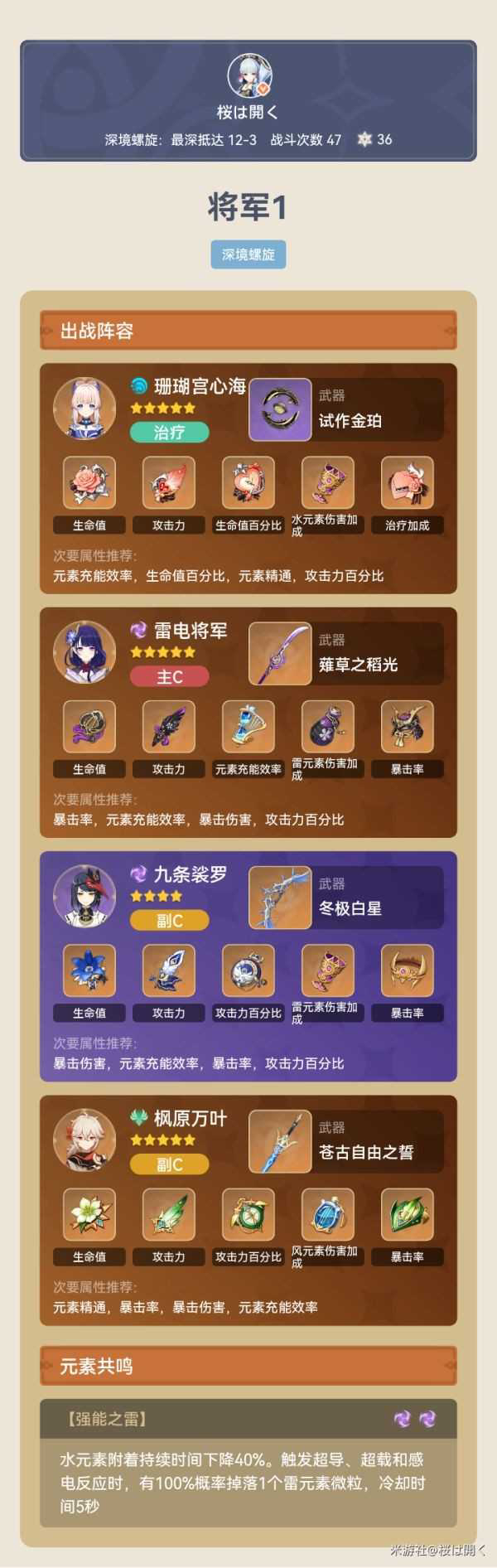 《原神》中雷电将军是一个人气很高的角色,不少玩家想要了解她的技能机制和装备搭配,下面请看“桜は開く”分享的《原神》雷电将军机制介绍及装备推荐,希望能够帮助大家。