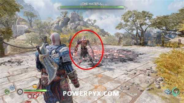在战斗中,这个小BOSS会发动一次突袭,以及一次无法阻挡的火焰攻击,所以看到它抬手准备攻击时,一定要立刻向侧方闪避;战斗进行到一半时,场中还会刷出两个小怪,此时可以趁机用斯巴达之怒进行近战攻击,恢复自身血量。和BOSS战斗时一定要有耐心,及时闪避或格挡,并寻找机会反击。
