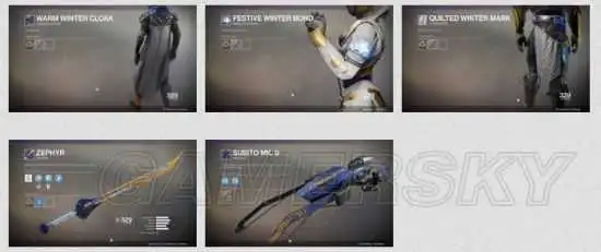 包括曙光节风格的摩托、飞机、机灵、配色、猎人披风、术士臂环、泰坦印记、大宝剑以及各种代币。