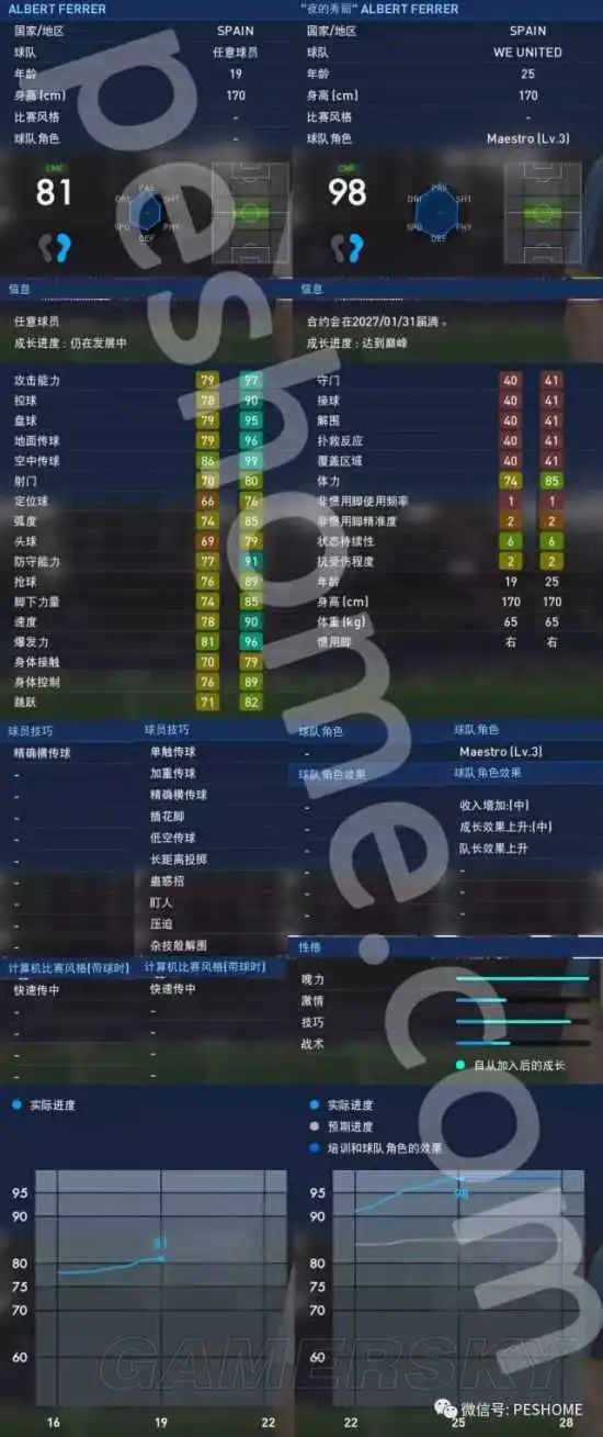 使用评价:阿尔伯特·费雷尔是pes2017中的巴塞罗那官方授权经典球员,在mc模式中出现,通过存档编辑器可以调用到ml模式中进行使用和培养。实况足球的历代大师联赛中,都有一些球员会通过后天的成长变成一个全能甚至全精的球员,而一看阿尔伯特·费雷尔的初始能力值,很明显就可以看出他从一开始即是全方面发展的人才。阿尔伯特·费雷尔身高虽然不高,体重也非常轻巧,对抗能力值也很一般,却是一个不畏碰撞,全场飞奔的b2b型中场,除了覆盖面积大以外,阿尔伯特·费雷尔的敏捷性和速度值也很高,所以盘控手感非常好,持球机会也多,远射也很强,同时传球也很出色。从非转生球星这个分类来讲,阿尔伯特·费雷尔在同特点球员中的实力绝对够得上历史级了。