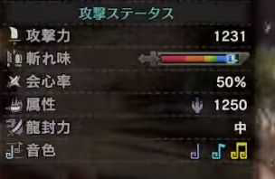 划重点:属性攻击up,属性系效果up,冰原改动后属性有了更高的上限(1.6倍)所以属性up可以真正的发挥作用了!据我在k站上查的结果有这两个音色的笛子有:龙封笛,麒麟笛,雷狼笛和溟波笛子,这里以龙封笛子这个属攻最高的为例进行测试。