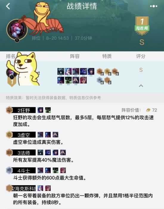 这个阵容就是虚空斗法的提升版,成型容易强度高。前中期走虚空斗法:配置是狼人狐狸挖掘机露露卡萨丁大虫子蔚,这个阵容中期就可以锁血。