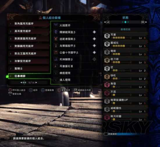PS2:最近想脱离大马士革及角龙盾斧的行列才在配这种另类装,结果大马士革这件装真的好用到夸张(对需要集中的武器来说),害我的大剑不敢用他配第一套套装。