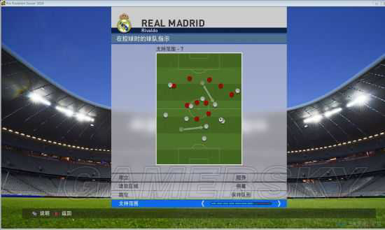 先上阵形,用的预设战术,把流畅阵形打开,出现开始 控球 不控球 阵形 在开赛时和不控球时的阵形是一样的