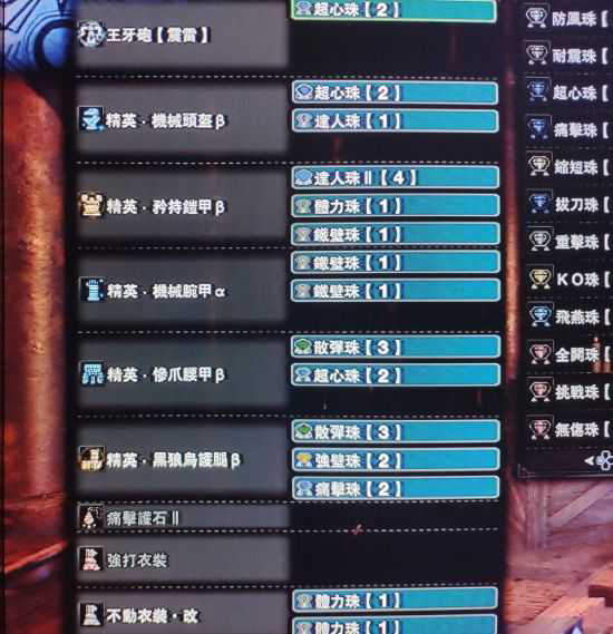 武器3盾1反动1近射,目前克制强化了一次会心,刚好只有克制会心的材料。等后面刷出来升级属解3护石和克制吸血的材料,看看能否上无伤进一步提升。