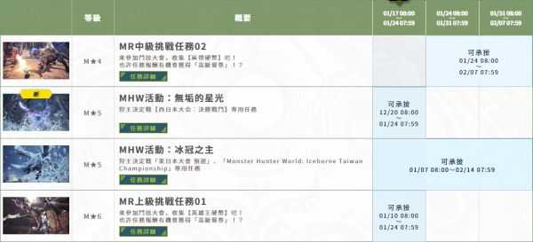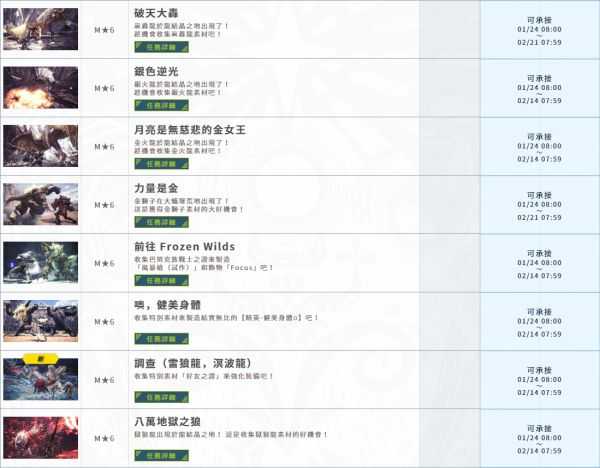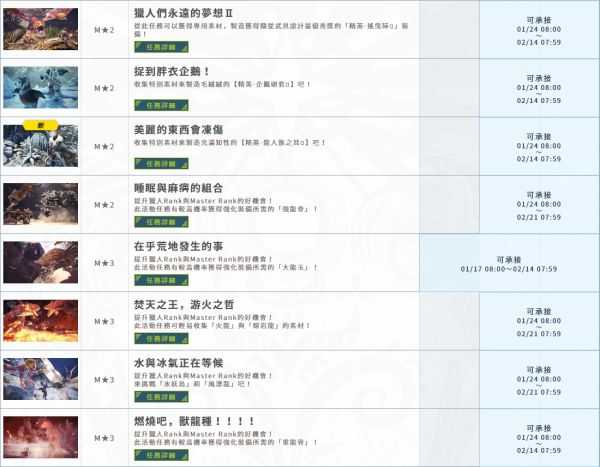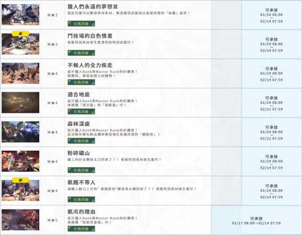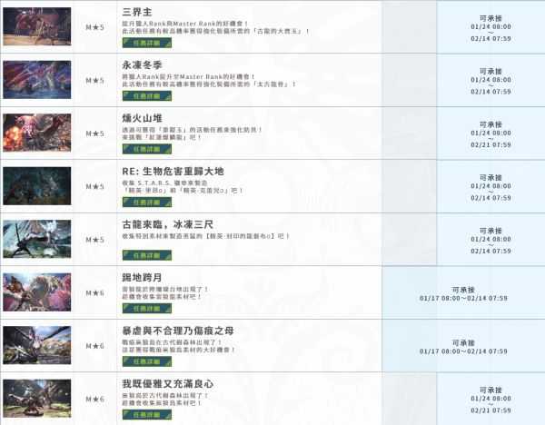 就快要春节了,在休假期间,《怪物猎人世界》冰原也是准备了很多的任务,就算是歇也别忘记合理护肝哦。下面为大家带来《怪物猎人世界》冰原1.17-2.07活动任务一览,希望对大家有用。
