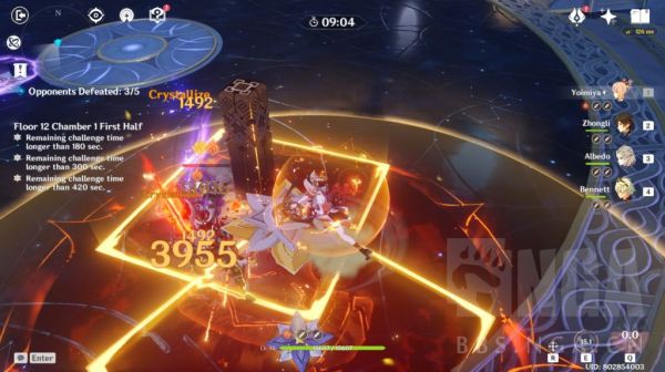 12-1 的两个大武士需要一起杀,所以宵宫千万不能手快把其中一个杀了,需要两只都大概剩20-30%血量左右,让钟离大直接把两只一起秒了。