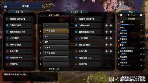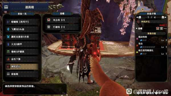 护石是弱特2加个2级孔,没有的话就少插一个攻击珠就可以了,这套用了两个攻击珠和一个达人珠。