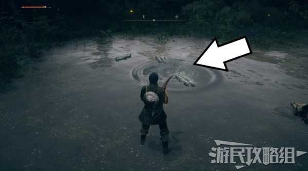 第三只乌龟在塔的北边,来到水池边,可以看到水池中央有溅起的水花,直接一刀砍过去把这个隐形的乌龟送走。