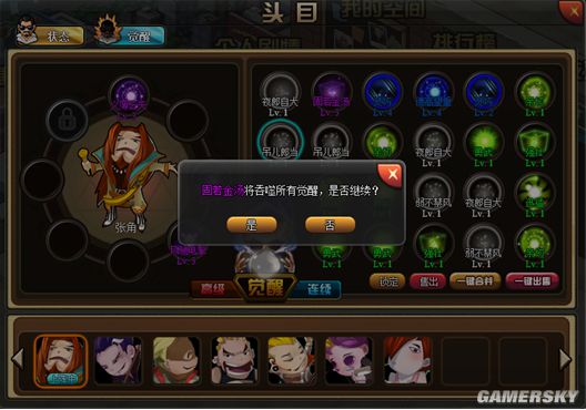 头目觉醒分为6种品质,依次是灰色、绿色、紫色、橙色、红色。灰色品质的觉醒只可出售不能用于头目使用,一键出售可以帮玩家一键卖掉灰色品质的觉醒,一键合并默认高品质吞噬低品质的觉醒,觉醒等级越高,玩家所获得的能力提升就越大。如果玩家需要保留某个觉醒,则需锁定该觉醒以保证不会被吞噬。
