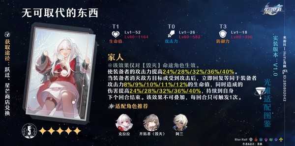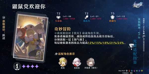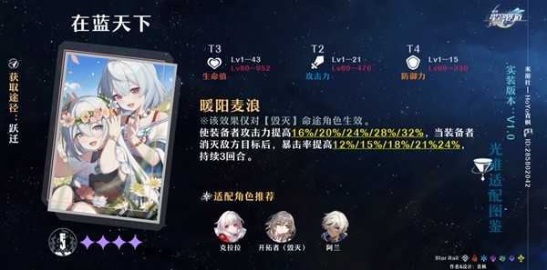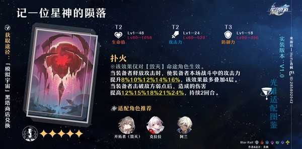 适用于大多数毁灭角色,开拓者装配可提供攻击力加成,在击杀敌方后获得暴击率加成,需要觉有有一定的练度,可作为过渡光锥使用;
