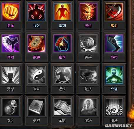 精兵:增加兵种特性效果。以常用的铁骑兵为例该属性能增加特技威力。