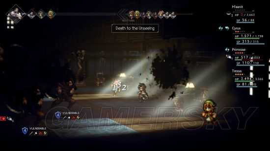 Eye Poke 对我方全体造成物理伤害,并概率赋予失明(防御347 伤害751)
