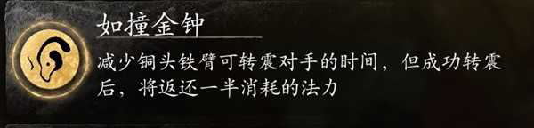 1.使用铜头铁臂和识破快速积攒棍势,三尖两刃枪优秀的攻击模组可以取消攻击后摇直接识破,套装效果和根器使得每次弹反成功后返还大量铜头铁臂的冷却时间与部分法力消耗,配合铜丸可以保证一场战斗几乎不会出现蓝不够而不能使用铜头铁臂的情况。