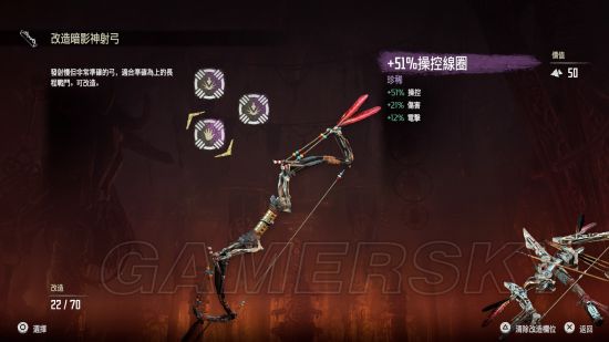 这把弓的攻击力很高,我插1个控制线圈,2个伤害线圈。其中两个伤害线圈副属性都是加控制的。拉弓快,伤害高。
