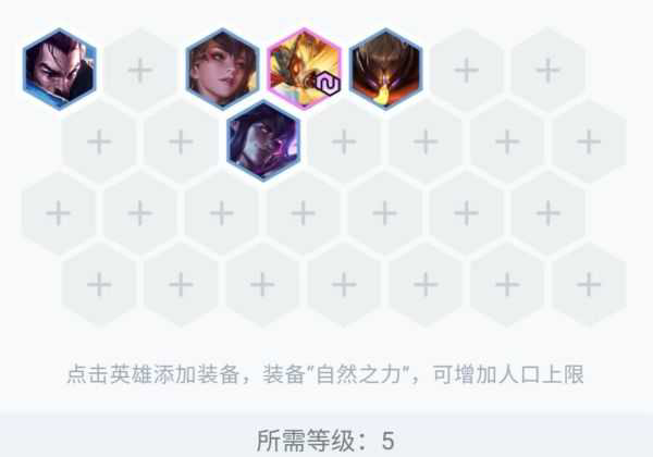 4人口猴子、武器、亚索、盖伦凑3天神2决斗2重装1浪人羁绊,前期有天选就不拉人口,否则2-1拉4人口。