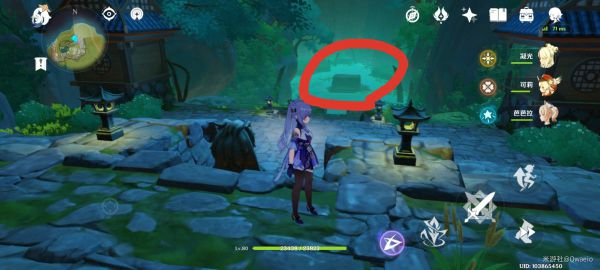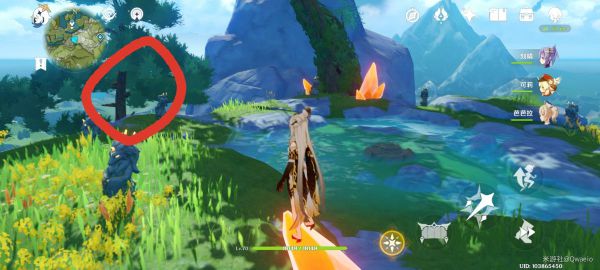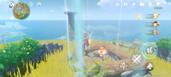 2.璃月港北边上坡顶,点燃火炬触发风场。宝箱就在前面石台上。