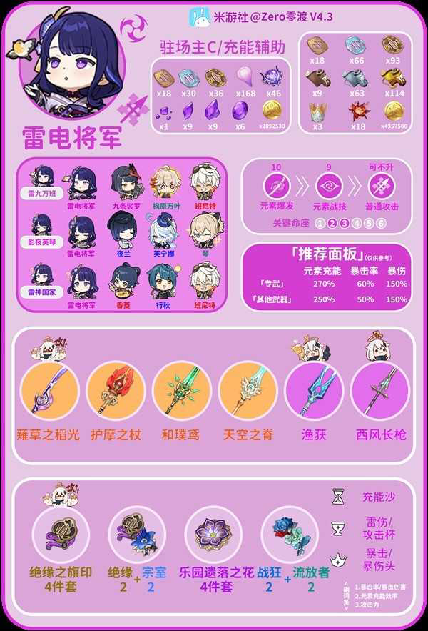 《原神》4.3版本下半期复刻了五星雷电将军,那么在这个版本下雷神要怎么培养,又要如何搭配队伍呢?请看下面由“Zero零渡”带来的《原神》4.3版本雷电将军培养与配队攻略,希望对大家有用。