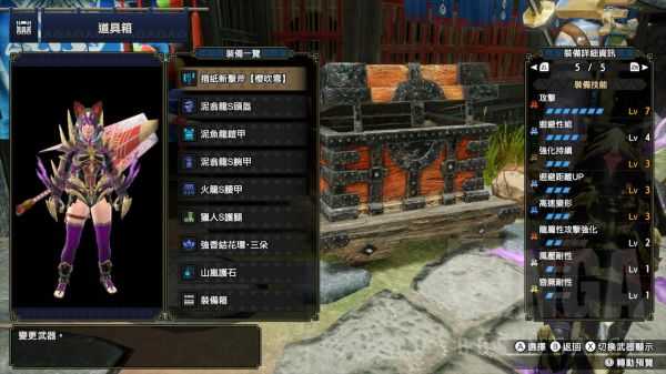 选择了两个回避技能用来保命,攻击7技能用来提升攻击力 废话 ,籍由强化持续和高速变形来补充不够的伤害(龙属性攻击珠子还没有做全,等补完可以满)。武器方面,可以选择好看又好用的折纸斧,也可以使用斩味条最长的毒属性迅龙斧(毒瓶…我不太喜欢)