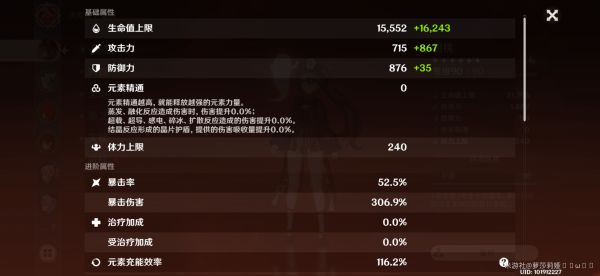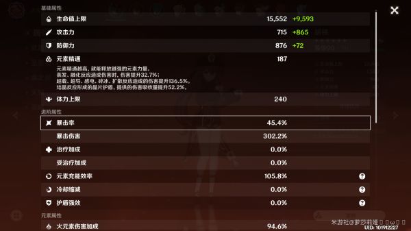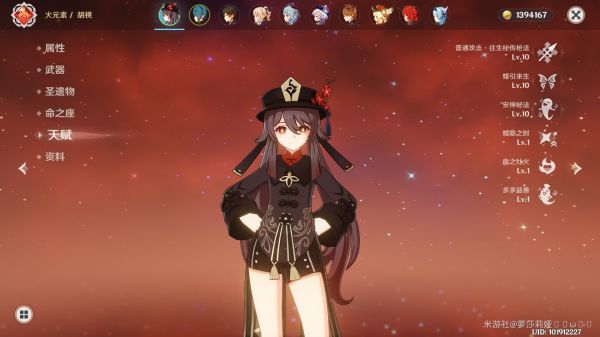 测试对象基本数据:1命胡桃,精一护摩,天赋10/10/10。