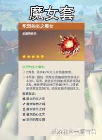 可莉的套装选取方面,可莉的毕业套为魔女4件套,提高了火伤的同时还增加蒸发融化反应的系数。