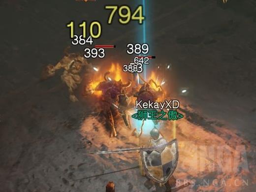 现在面对大批量怪群,我们可以在走位的同时盾闪点燃,暴击触发宝石,高频DOT再触发苦行四件套
