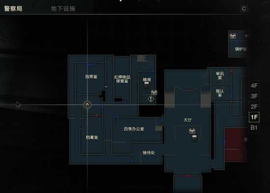 在1楼指挥室里,需要把铁链子剪掉进入的室内,里面有一块白板写着“locker room”-“CAP”。