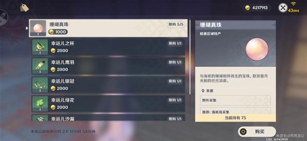 与珊瑚宫NPC对话获得(不能获得第二次)
