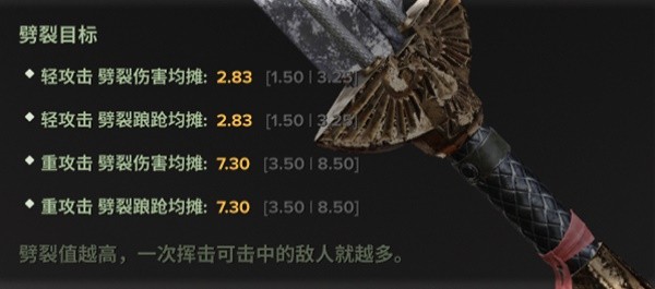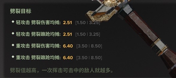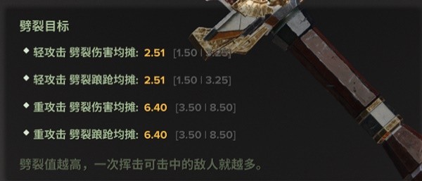 2.劈裂目标。很多老哥都说这项数值并不重要,理由是就算能劈多几个人但是它分摊的伤害不能造成秒杀的话,意义就不是很大了。
