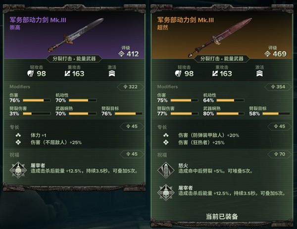 楼主刚好有2把劈裂目标相差较大同时都有屠宰者祝福的动力剑: