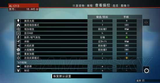 游戏中大部分界面的操作都会有相关提示,这里仅给出可自定义控制的初始键位。