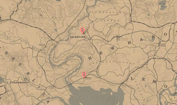 狩猎2只狐狸剥下皮毛即可完成。(建议在下图中的区域完成,因为离2、3任务采集点比较近)
