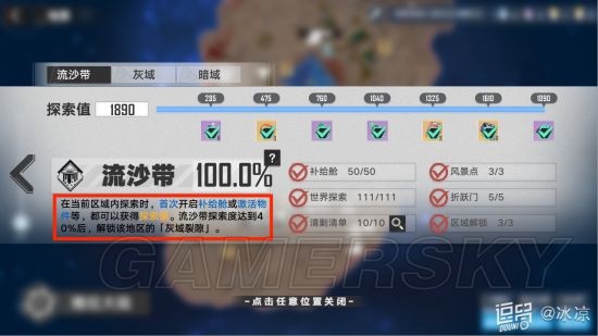(2)等到一个区域剩下少量点位时,可以使用探索进度赠送的灰域罗经,到达探索点后,开启灰域罗经进入灰域寻找剩余的探索点。