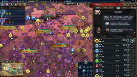最终胜利图片,实际上204T已经胜利(文化胜利要到下一回合才结算),这是点了再来一回合的图,没想到希腊从244变成了246.最后好几个伟人巨作还没地方放了