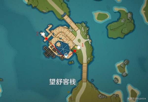 传送锚点出来,沿着左后方道路走,有一间客栈(3处调查点)。